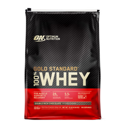 مسحوق جولد ستاندرد 100% واي بروتين - نكهة الشوكولاتة الغنية المركّزة - 10 رطل (149 حصة)